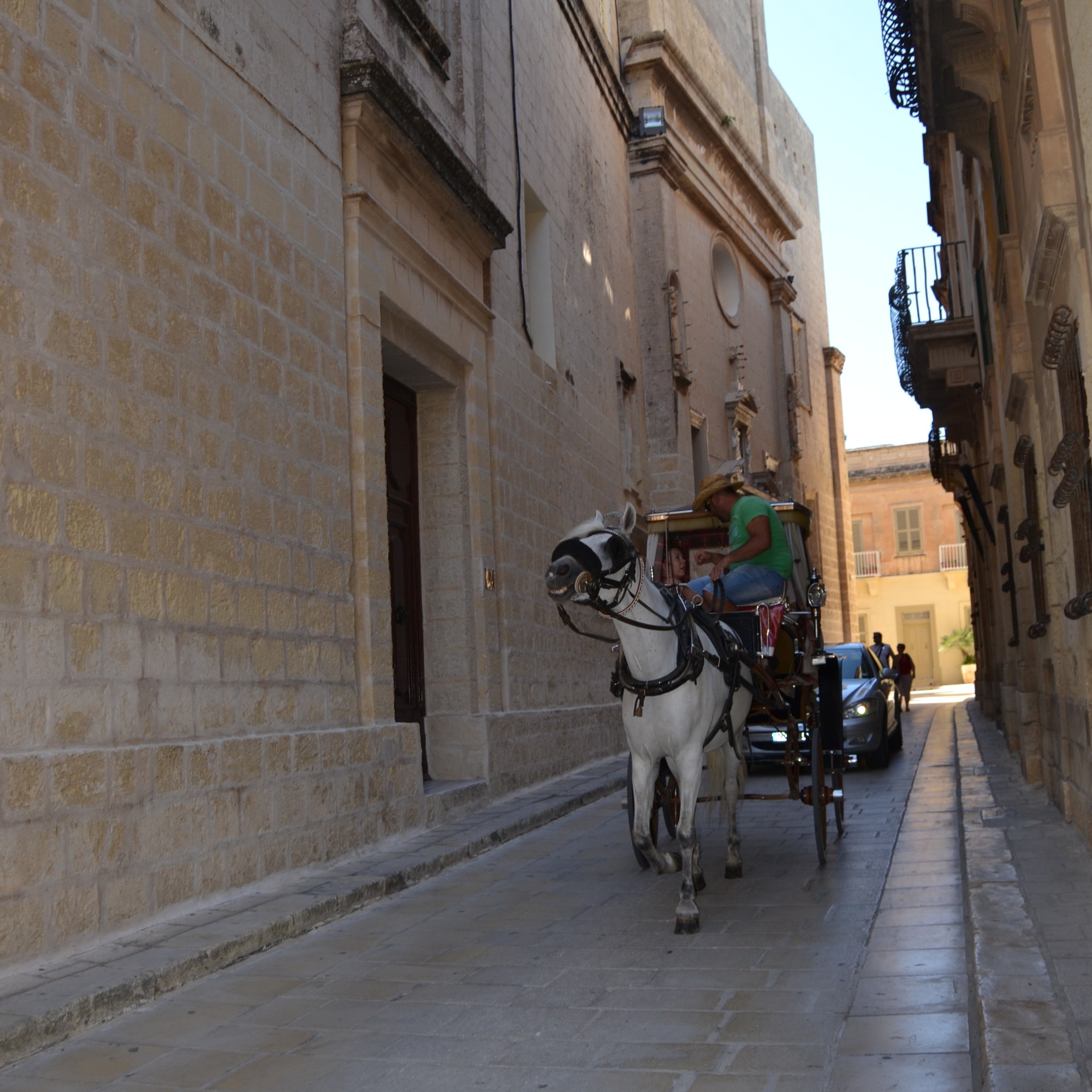 Mdina è detta città del silenzio, ed è ancora così. Le mura la isolano dai rumori esterni e nelle vie della vecchia capitale non si sentono molti rumori, se non zoccoli di cavalli e qualche automobile, infatti non è possibile girare ovunque con l’automobile, alcune vie sono talmente strette che ci si passa difficilmente con il motorino.
