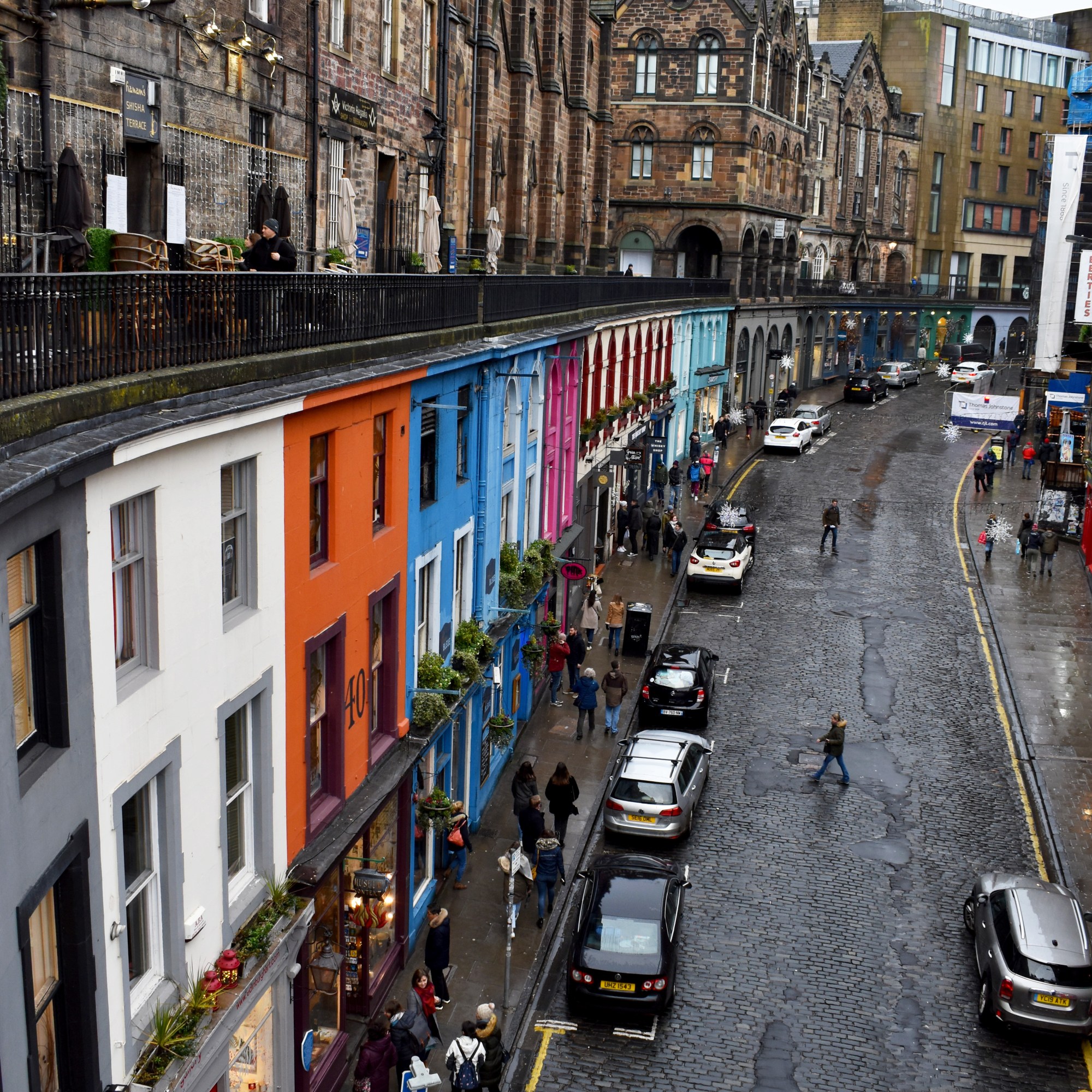Questa graziosa e particolare via, con le sue classiche facciate dai mattoni grigi contrastati dalle allegre e dipinte facciate dei negozietti creano un contrasto uno e inconfondibile, se siete ad Edimburgo, vi consiglio di fare una passeggiata lungo Victoria Street.